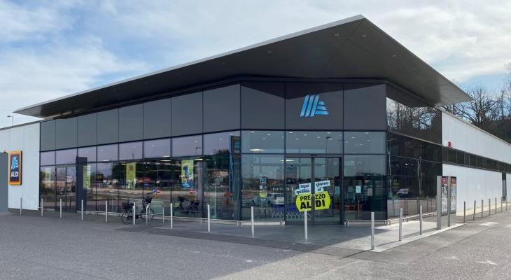 Home Aldi inaugura un negozio nel Multisala Plinius a Milano, è il 64esimo in Lombardia ALDI_Punto vendita esterno