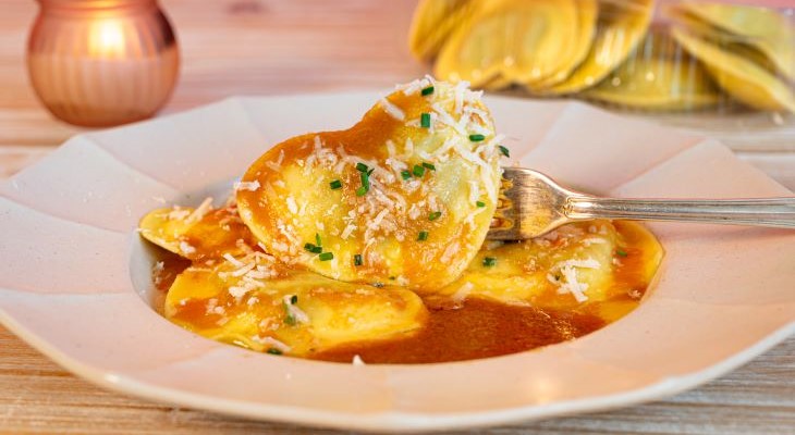 Il primo prodotto, disponibile fino al 9 marzo, è un raviolo a forma di cuore, che nasce da uno stampo studiato ad hoc per ottenere un formato di circa 16 grammi, con una parte centrale ampia capace di contenere fino al 50% di ripieno, valorizzandone gusto e texture.